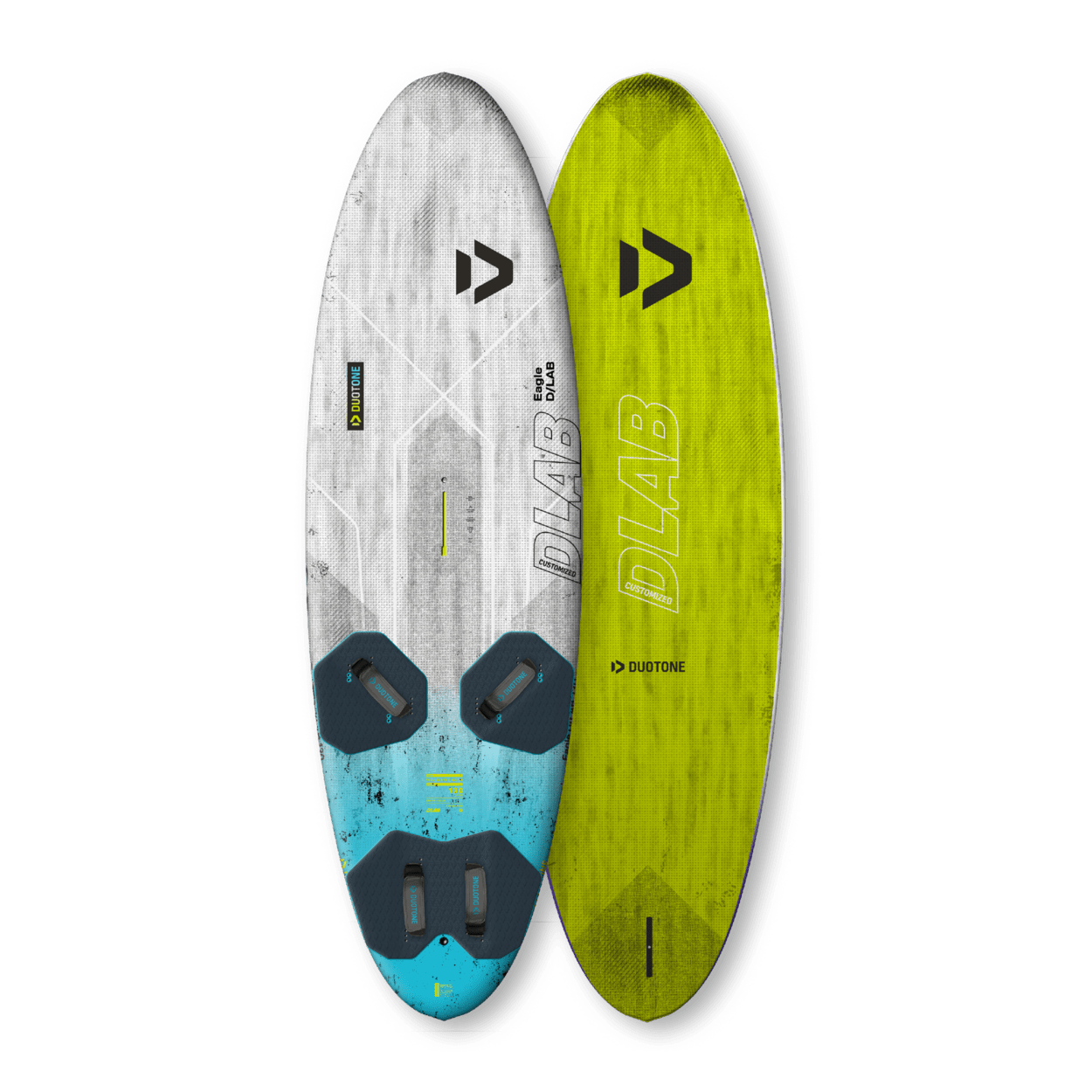 With the EAGLE and the brand-new BLITZ we offer 2 boards for the freeride >< freerace segment covering everything from learning to plan up to being the fastest sailor at your spot. Now imagine to combine this with the same high-end FULL CUSTOM D/LAB construction being used for the FALCON_FIN and there you have it: the EAGLE and BLITZ D/LAB CUSTOMIZED are the stiffest, lightest and earliest planing boards in their class. In fact they are over a kilo lighter than other comparable boards.EAGLE or BLITZ - which one is the right freeride >< freerace board for you?Where you come from >< Where it will take you1) EAGLE: IT’S ALL ABOUT PLANINGWhere you come from: you had your first Windsurfing experience and are capable of staying upwind. There is no other board which will help you to experience the gliding/planing sensation in such a short time than the EAGLE. Where it will take you: besides getting planing, jibing is the second strength of the EAGLE. But it’s not just made for learning to (power)jibe but will even accompany you up to freerace blasting and laydown jibing 2) BLITZ: MAXIMUM PERFORMANCE WITH MINIMUM EFFORTWhere you come from: you are comfortable of sailing in the foot straps then the BLITZ is your performance machine. Where it will take you: the BLITZ will instantly make you a faster sailor. Since it’s also very easy to jibe it will be your partner from your first power jibes up to pro level laydown race jibes. Partnered with a high performance fin and a freerace sail you might even become the fastest guy at your spot with the BLITZ, whilst still maintaining the comfort of a freeride board.The EAGLE was designed with the following objectives:> Super early (passive) planing> Automatic/instinctive jibing> Maximum wind range and control even in choppy conditions This makes the EAGLE the perfect intermediate to advanced board which will accompany you from your first planing attempts all the way through to blasting and laydown jibing. To achieve these characteristics the team around Dani Aeberli (Product Manager Boards) have developed the VOLUME YET CONTROL CONCEPT:The slightly longer and therefore less curved outline allows us to increase the volume by up to 30 litres compared to short-curved boards (e.g. Fanatic Gecko or Tabou Rocket) without any loss of control. The extra volume though results in a much more confident, predictable and relaxed riding position especially in underpowered or sub-planing conditions. >> This leads to an unbeatable, broad range of use.The slightly longer and therefore less curved outline also offers 2 additional important advantages:1) It prevents the board from turning unnecessarily into the wind which lets the Eagle get onto a plane almost automatically2) It prevents the board from bouncing around even in rough chop which becomes an issue with wide-curved boards The maneuver-oriented rail shape allows for an effortlessness and predictable jibing behavior as the thin rails require less pressure to initiate the turn. This is ideal for jibing novices or to increase your lay-down jibing success rate. Yet even for an advanced sailor the EAGLE is anything but a boring board to sail. It almost feels like a longer version of the BLITZ since it shares a very similar scoop-rocker line. Finally, the EAGLE D/LAB CUSTOMIZED can be ordered with a Single or Twinser fin box setup.Single fin setup: this presents the ideal compromise between performance and maneuverability. Also with a single fin, you'll be on the water in no time.Twinser fin setup: this is THE solution for any shallow water spot. Also the Twinser setup improves the maneuverability even further.YOUR NEW EAGLE D/LAB CUSTOMIZED DREAM MACHINES ARE READY AND WAITING FOR YOU TO GO BEYOND IMAGINATION!